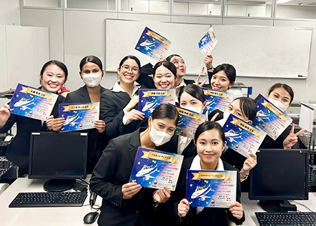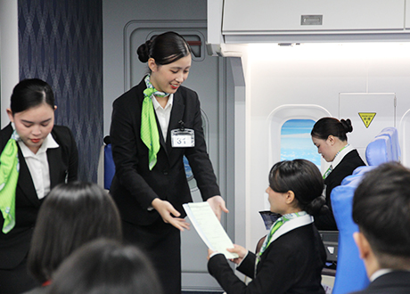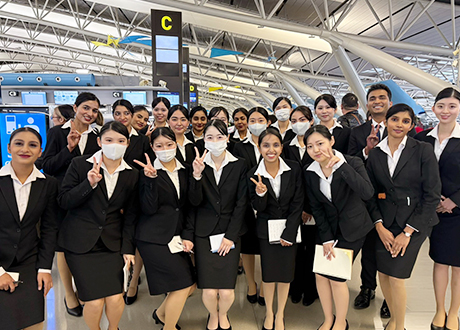 立ち居振る舞いやマナーも実践的に学習し、航空業界で即戦力となる人材を目指します。