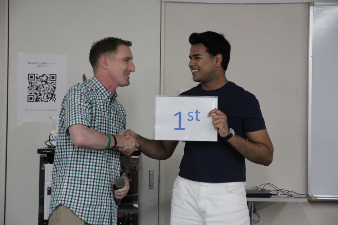 今回、本校代表として全国の舞台に立った学生は留学生で、母国語は英語ではありません。