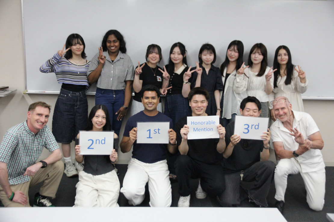 まず、レベル別の英語クラスでの発表を通して優秀と認められた学生が校内ファイナルコンテストへ進み、