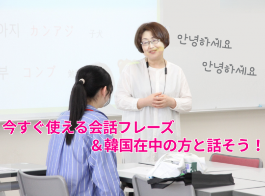 日常ですぐに使える韓国語のフレーズを学び、韓国在住の方との会話にチャレンジできる講座!実践を通して、リアルな表現やコミュニケーション力を楽しく身につけよう♪